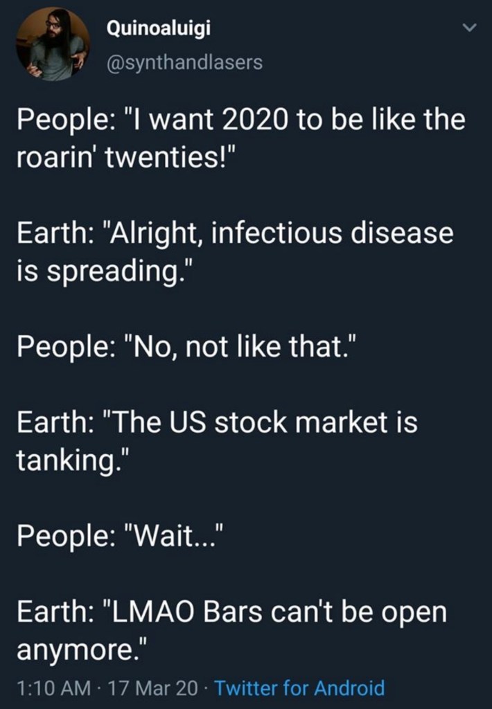 We do know that some of the smartest people on the planet are working around the clock to find a treatment for the sickest patients and to find a vaccine to help all of us. There is progress and we will move past this even though that is a small consolation today.